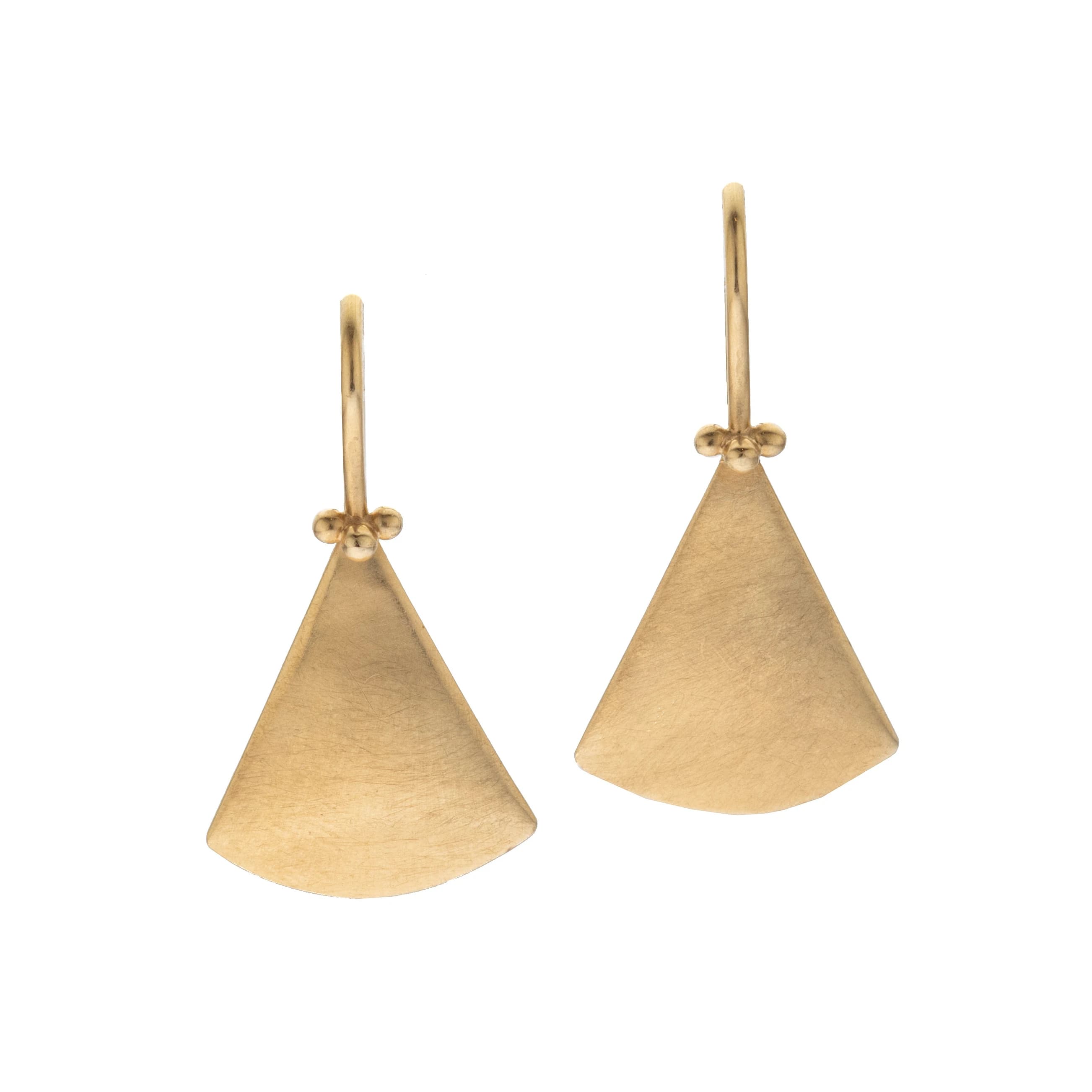 Diese zarten Ohrhänger begeistern mit ihrer leicht geschwungenen, dreieckigen Form, die dezent von drei kleinen Goldkugeln am Bügel geziert wird. Das schlichte, harmonische Design verleiht dem Schmuck eine moderne Leichtigkeit – perfekt für jeden Anlass.